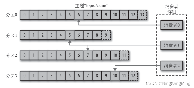 消费者群组:一个主题可以有多个分区,一个分区可以被不同的消费者群组消费,但一个分区在同一消费者群组内只能被一个消费者消费(避免重复消费)。群组消费可以加强消费能力,避免消息过度堆积,但同时带来了无法做到严格有序消费问题。