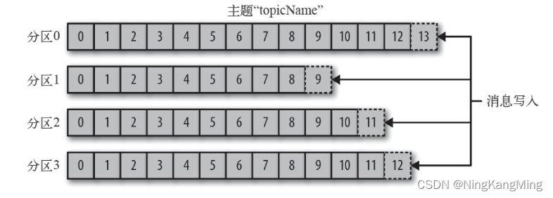 Kafka的消息通过主题进行分类。主题可以被分为若干分区,一个主题通过分区分布于Kafka集群中,提供了横向扩展的能力。主题跟分区,用关系型数据库来类比 的话就是表和数据分片,其本质是一样的,都是存储数据和数据扩容的一种方式。