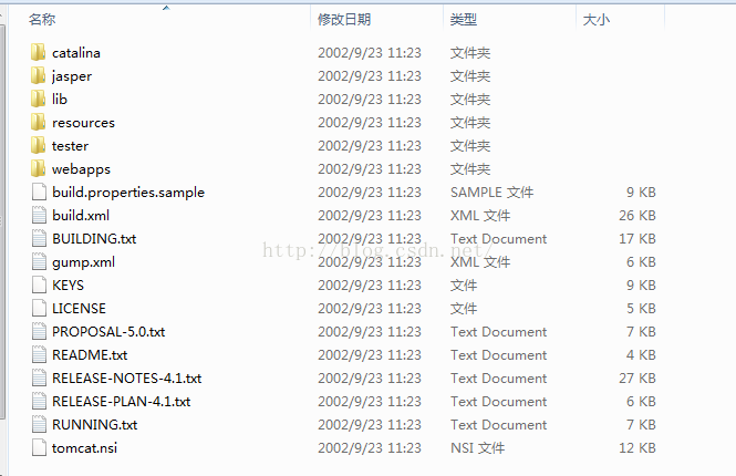我使用的是tomcat-4.1.12-src.zip,网址:http://download.csdn.net/detail/u012945986/9656777 解压过后目录结构为: