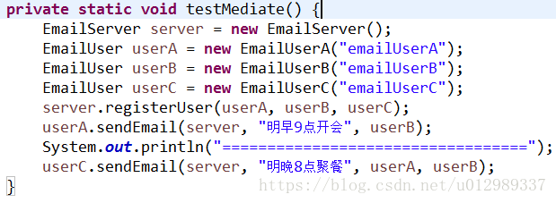 - public AbstractMediator(AbstractColleague a, AbstractColleague b) {
