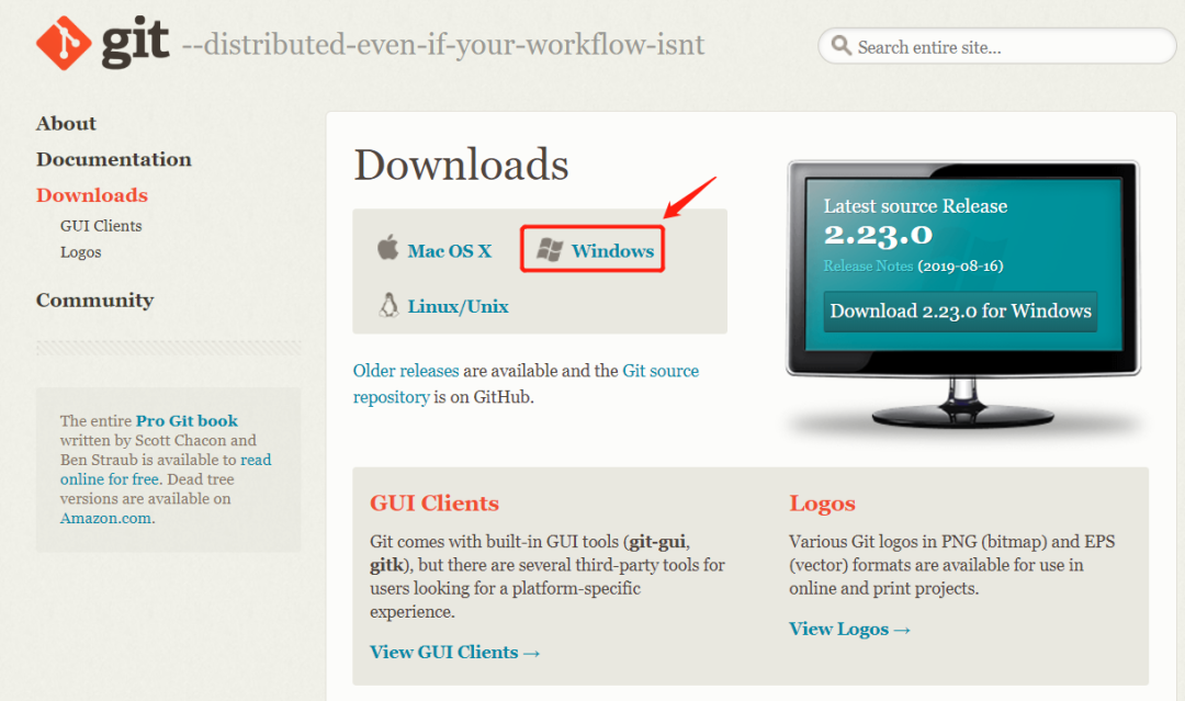 点击 git 官网,下载安装包。