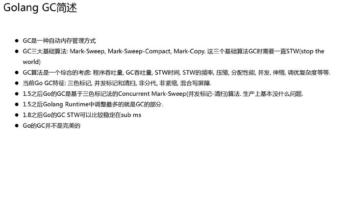 这里更正一下 ppt 中的内容, 并不是因为 gc 没完成而导致其他协程不能运行, 而是后续 gc 无法开启, 导致实质上的 stw.
