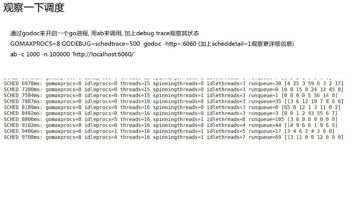 - 实践: 观察调度, GC 信息, 一些优化的方式, 几点问题排查的思路, 几个有意思的问题排查