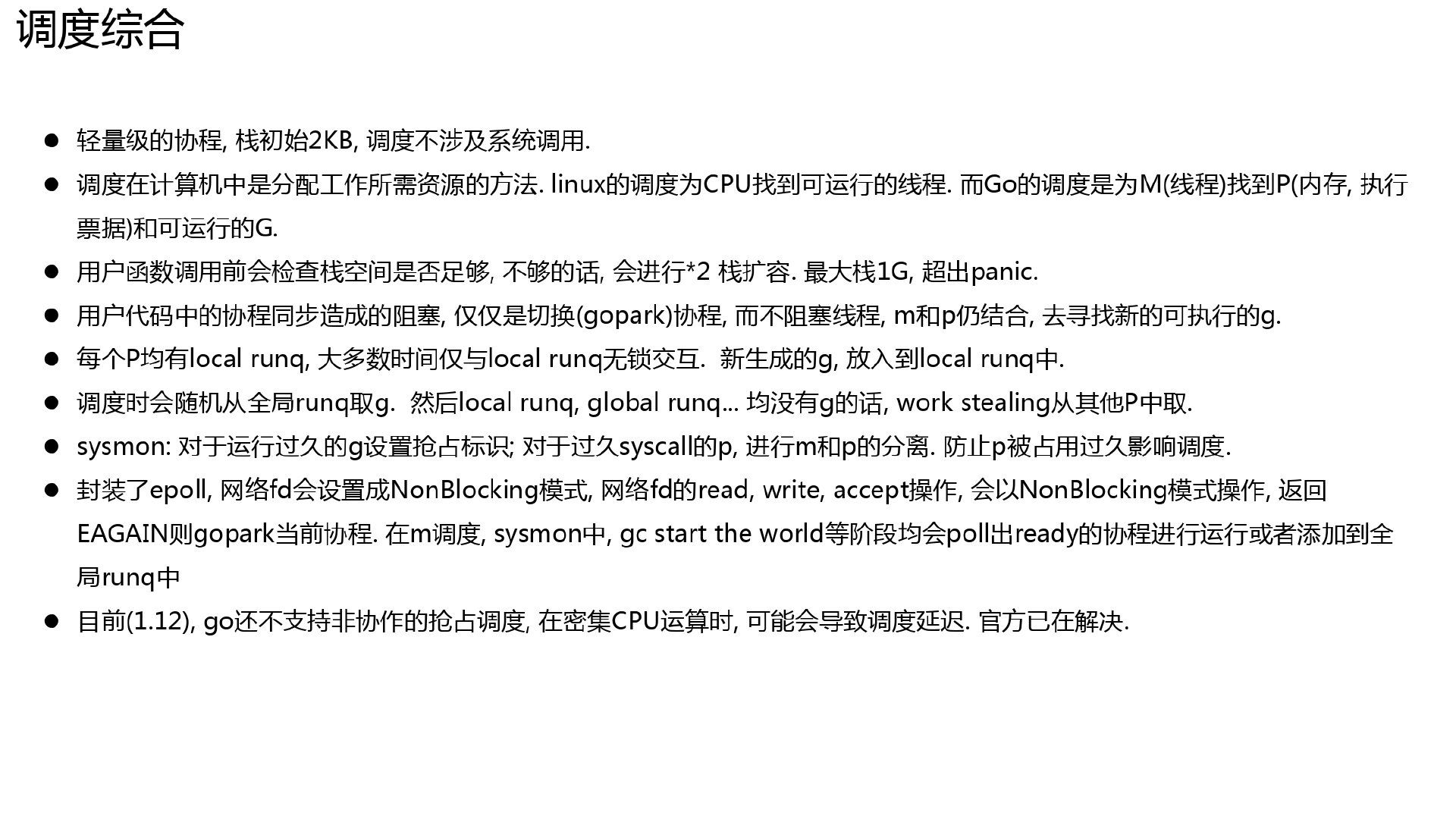 - Go 调度: 协程结构体, 上下文切换, 调度队列, 大致调度流程, 同步执行流又不阻塞线程的网络实现等