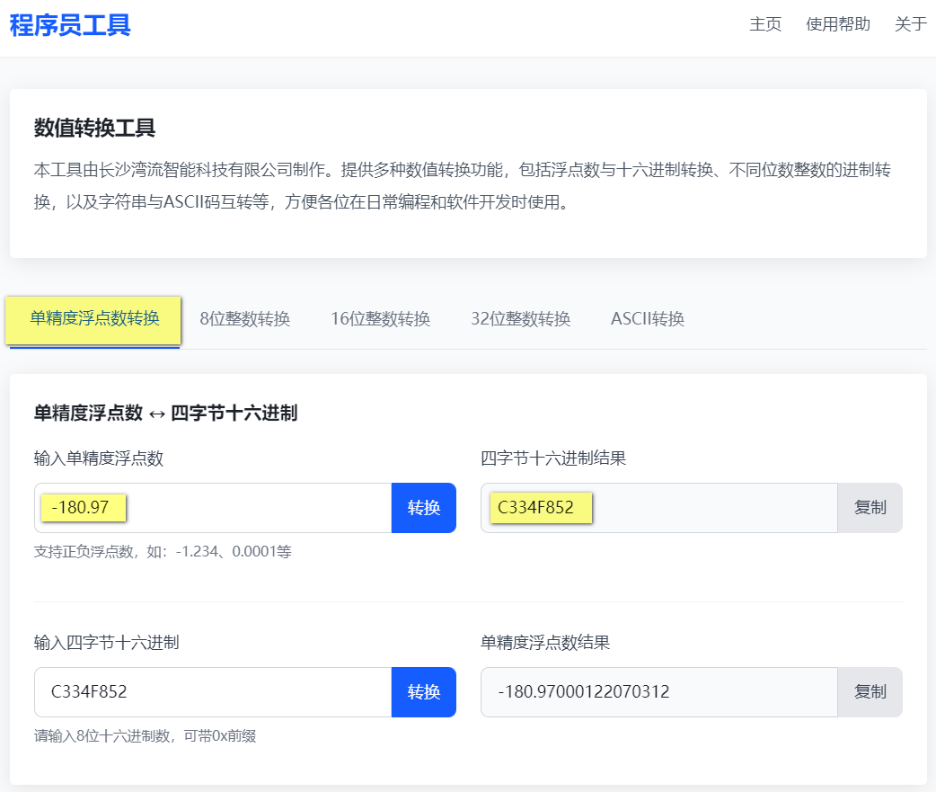 在这里给各位程序员朋友提供一个集成多场景功能的数值转换工具 —— 从单精度浮点数与四字节十六进制的精准互转,到 8 位、16 位、32 位有符号 / 无符号整数的进制切换,再到字符串与 ASCII 码(十进制 / 十六进制)的双向转换。