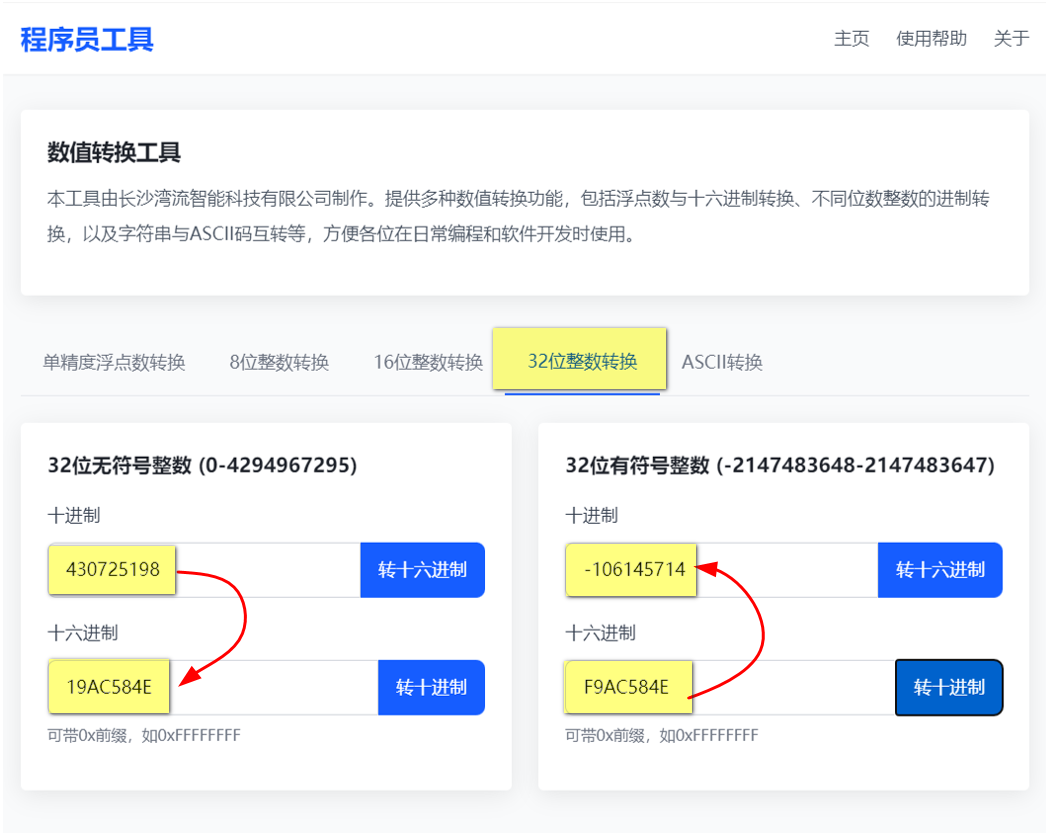 4、32位无符号数、有符号数与十六进制互转