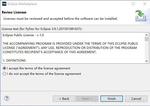 6. 选择接受,点击finish