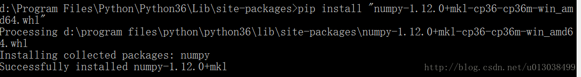下载之后打开dos命令行,进入库文件所在路径,然后用命令行安装库文件,注意,一定要先安装numpy,因为另外两个是基于numpy安装的。