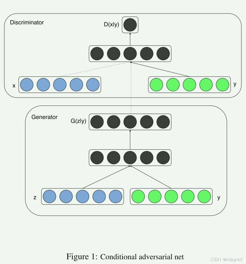 Conditional Generative Adversarial Nets 生成对抗网络 [8] 最近被引入作为训练生成模型的一种新颖方法。在这项工作中,我们介绍了生成对抗网络的条件版本,它可以通过简单地输入我们希望以生成器和判别器为条件的数据 y 来构建。我们证明该模型可以生成以类别标签为条件的 MNIST 数字。我们还说明了如何使用该模型来学习多模态模型,并提供了图像标记应用的初步示例,其中我们演示了该方法如何生成不属于训练标签的描述性标签。