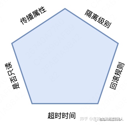 Spring的事务有5大属性,可以图示如下:
