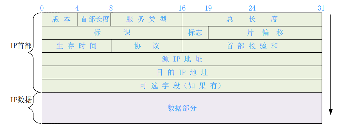 目的地址(Destination Address):占32位(IPv4)或128位(IPv6),标识接收方的IP地址。