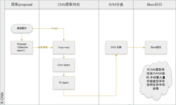 3 使用SVM代替了CNN网络中最后的Softmax,同时用CNN输出的4096维向量进行Bounding Box回归。