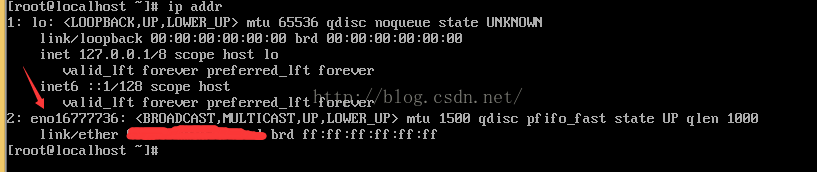 1输入ip addr 查看有无ip,没有则记住网卡名(如我的网卡名为eno 16777736) 2 进入网卡配置目录 cd /etc/sysconfig/network-scripts/ 并查看网卡文件(红色箭头代表网卡文件)
