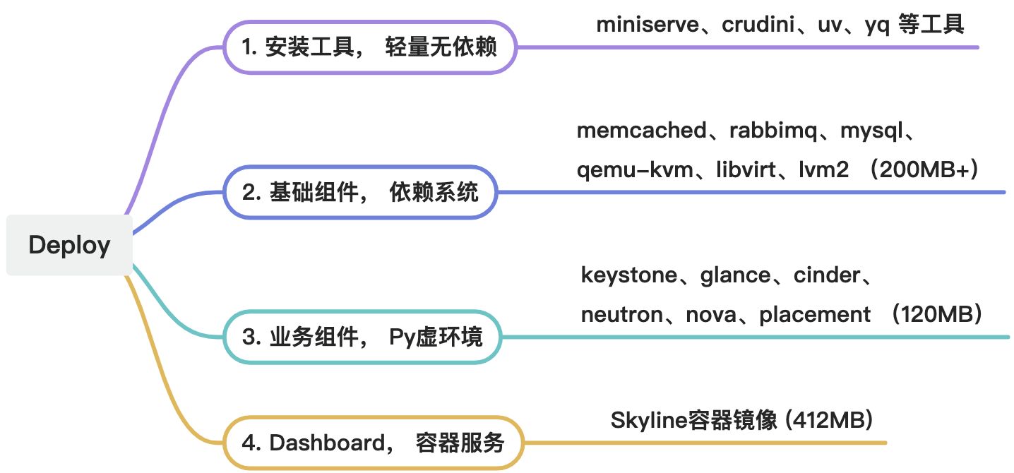 前面文章已经说过,由于OpenStack项目和生态几乎由Python完成,因此基于Python-Venv是其业务层面部署最好的方式。既有裸系统安装部署的简单、性能,又兼有容器化的代码隔离,仅需5分钟即可实现OpenStack项目的all-in-one离线快速部署。花了一些时间开发了demo,供学习参考。本章进行Demo的介绍演示。