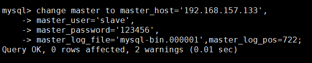 master_log_file='mysql-bin.具体数字',master_log_pos=具体值;