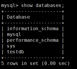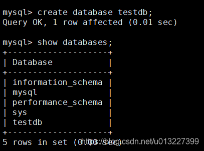 1、主机上创建一下testdb数据库,并查看数据库是否创建成功