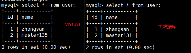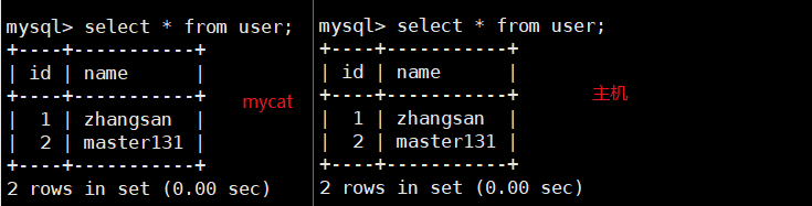 我们看到主机和从机上写的内容是一致,所以就证明没有实现读写分离。