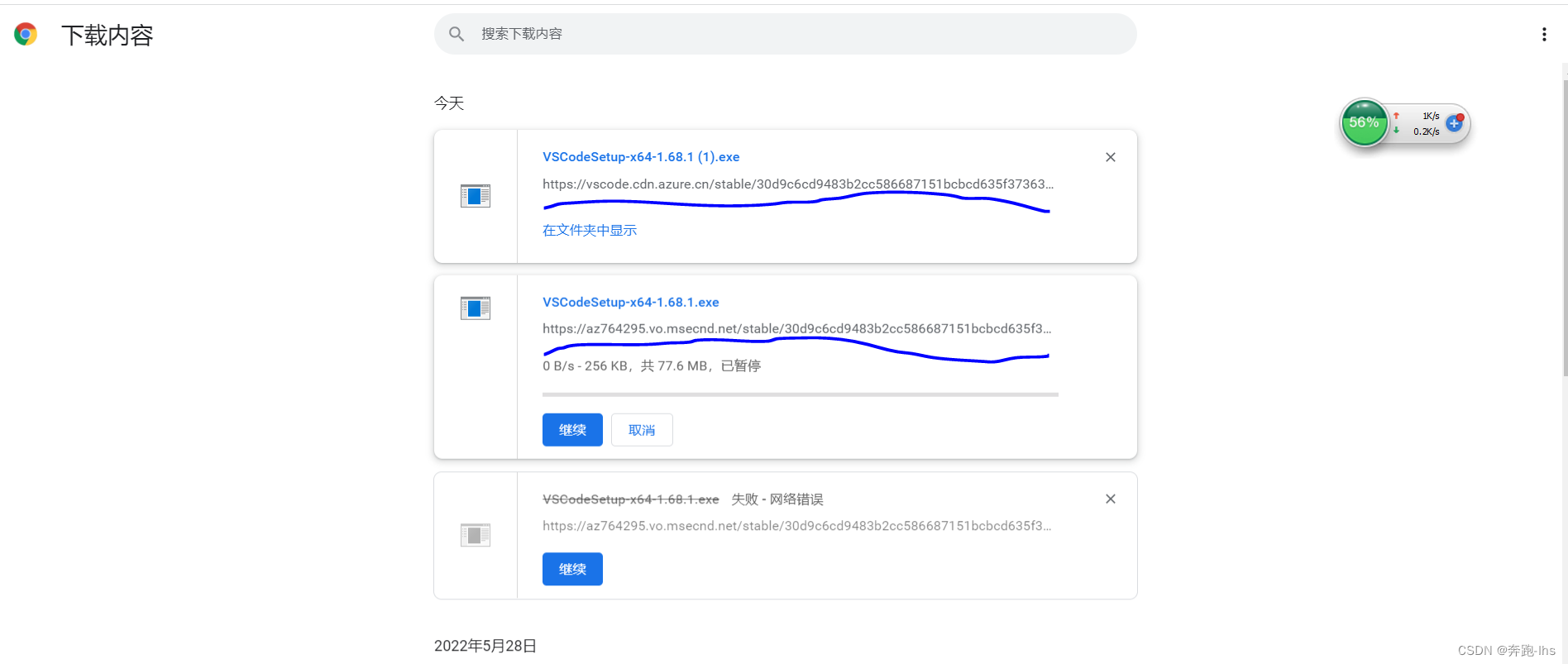 下载vscode安装包时,都习惯去官网下载,但是会如下图第一次下载那样缓慢,