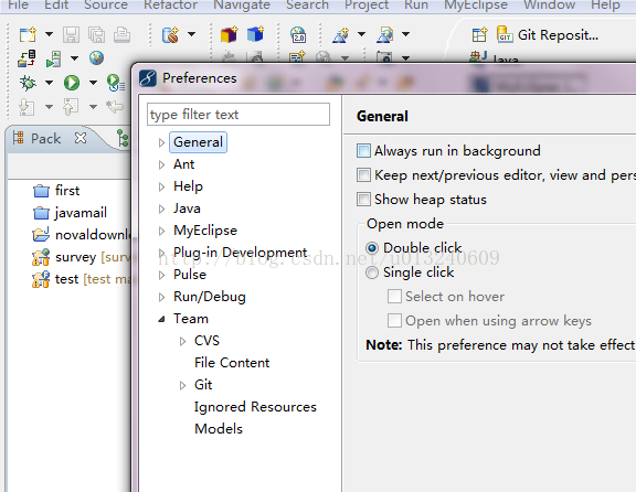 并且你去MyEclipse的workplace上查看你会发现,first项目不见了,而你的本地库上多了个first的项目。到此我们已经成功的将代码push到本地库了。接下来是将代码push到github上的操作。
