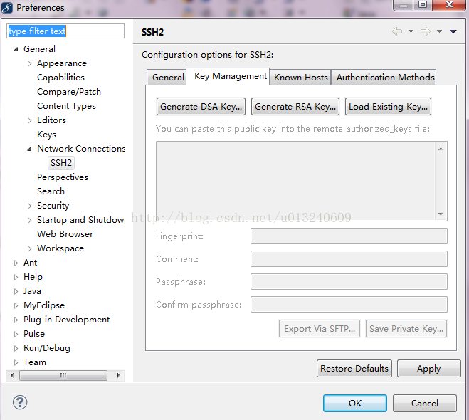 首先依次点击window--preferrence--general--network--ssh2 进入如下界面,选择key management
