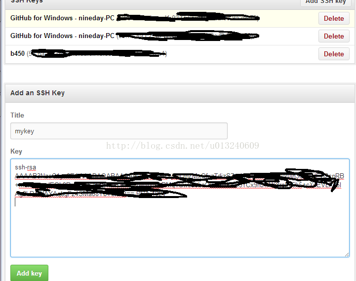点击下面的add key 完成ssh key 的添加