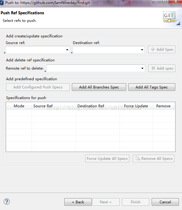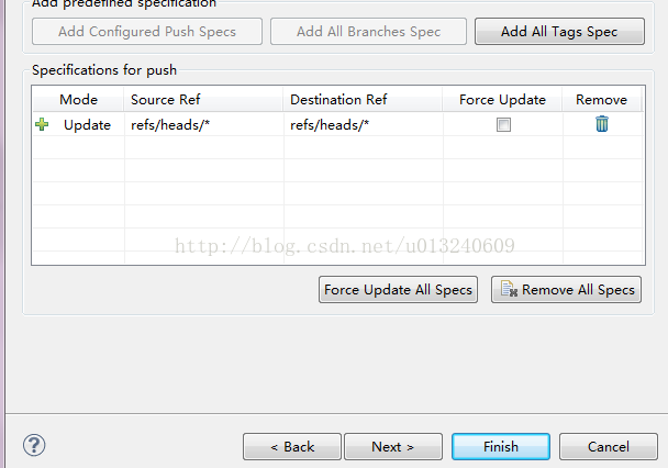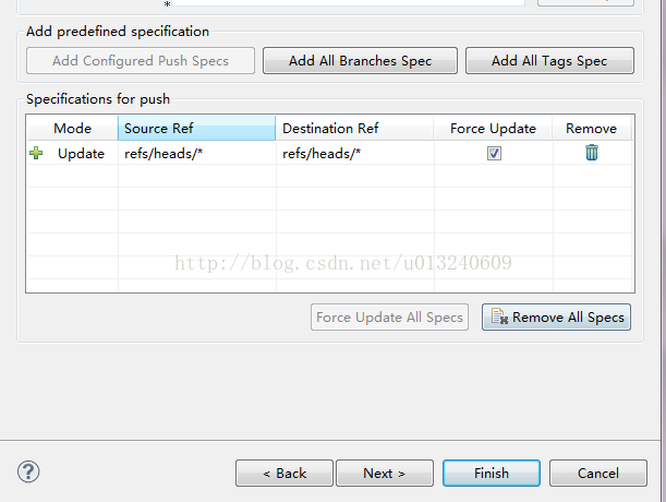 点击add all branches spec 勾选force update,点击finish