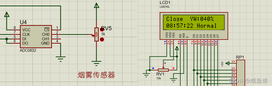 LCD1602主要用于对烟雾浓度、时间、门禁状态以及蜂鸣器状态进行显示。电路是由一个LCD1602液晶显示屏、一个10K的电位器、......
