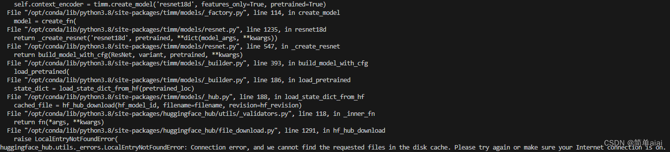 文章讲述了在使用timm加载模型时遇到ConnectionError的问题,原因在于HuggingFaceHub需要翻墙。解决方法是通过设置pretrained_cfg参数,从本地文件路径加载预训练模型。