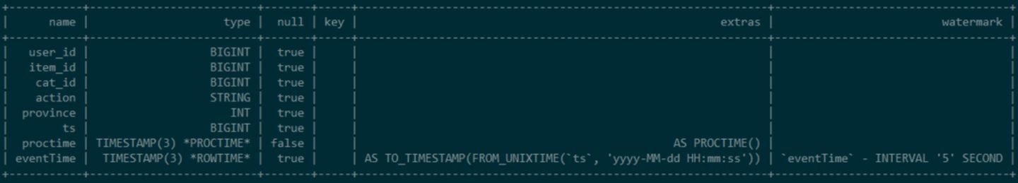 `eventTime` AS TO_TIMESTAMP(FROM_UNIXTIME(ts, 'yyyy-MM-dd HH:mm:ss')), -- 事件时间