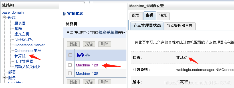 - 因为笔者测试环境中的管理服务器所在的machine中也配置了受管理服务器,所以配置管理机上的节点管理器。