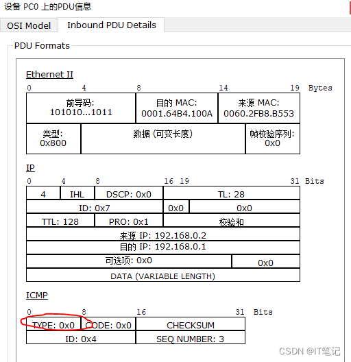 type:0 code:0 :表示回显应答(ping应答) Echo