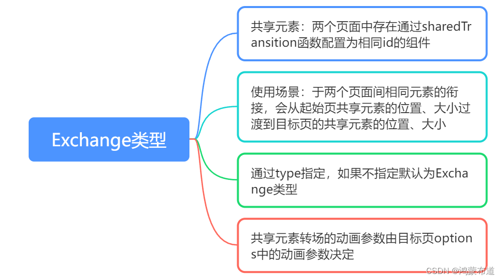 根据sharedTransitionOptions中的type参数,共享元素转场分为Exchange类型的共享元素转场和Static类型的共享元素转场。