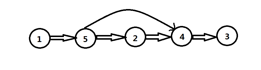 若按照我的贪心方法,我将删掉边(1->5),(4 -> 3),此时拓扑排序的输出将会是5, 3, 2, 1, 4。