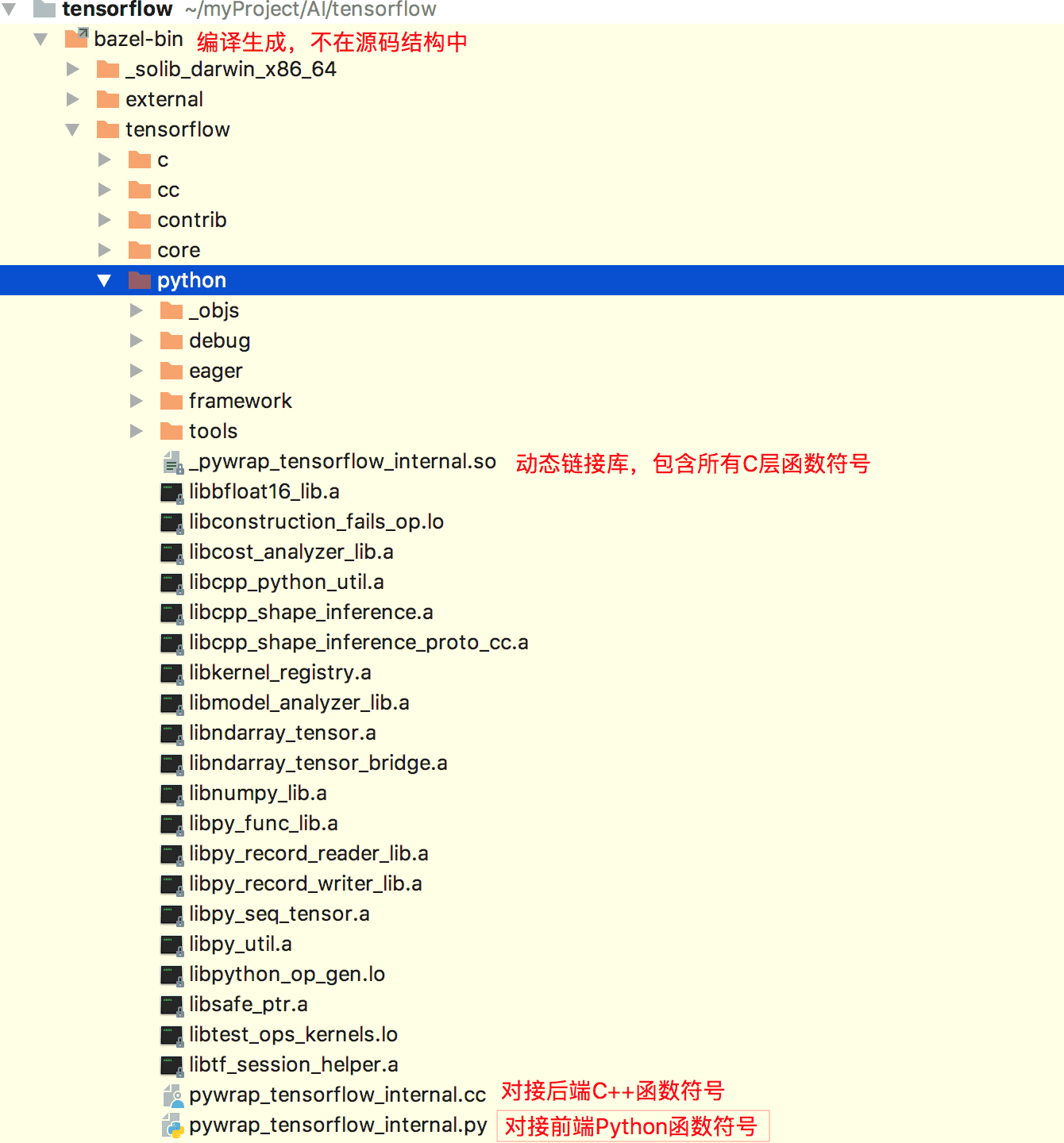 - pywrap_tensorflow_internal.py:对接上层Python调用