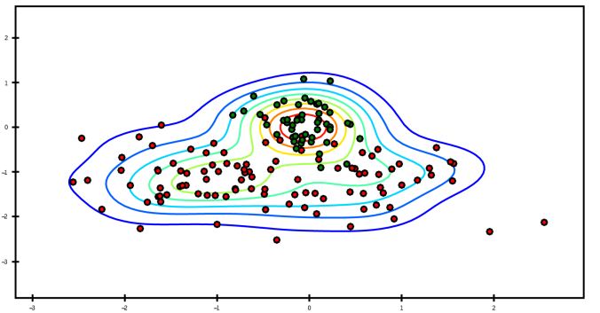 与此相关的一种图表类型是密度图,它是通过计算“可能会产生观测数据的连续概率分布的估计”而产生的。一般的过程是将该分布近似为一组核(即诸如正态(高斯)分布之类的较为简单的分布)。因此,密度图也被称作KDE(Kernel Density Estimate,核密度估计),如下所示: