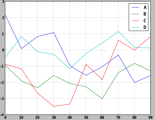 DataFrame的plot方法会在一个subplot中为各列绘制一条线,并自动创建图例,如下所示: