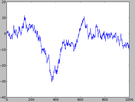 - In [30]: ax.plot(randn(1000).cumsum())