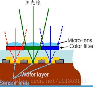 2 红光 绿光 蓝光的波长不一样,经过透镜折射之后角度不一样,再就是镜头的CRA和sensor CRA匹配,都会造成衰减