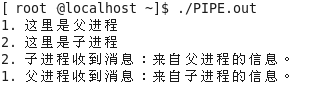 1编号代表父进程,2编号代表子进程。子进程休眠1秒。所以父进程发送消息给子进程,子进程立刻收到父进程信息,输出后,发送消息给父进程。