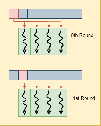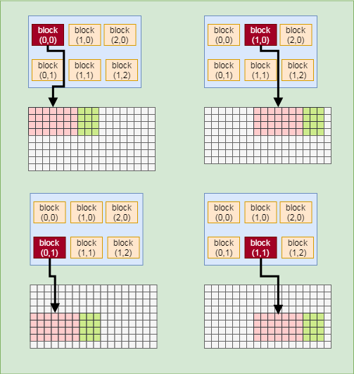 This is how the data are assigned to each block graphically. The block size is 4 x 4, kernel length = 7.