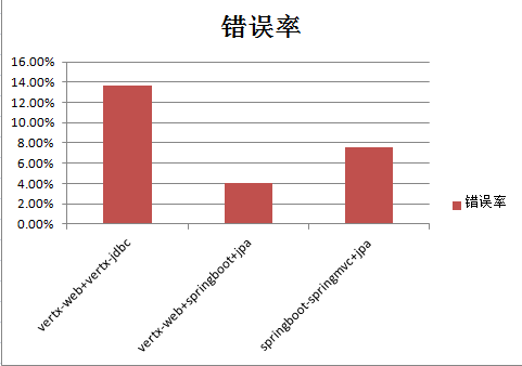 从结果上看,第二套架构性能最优,其吞吐量约为第三套传统架构的3.3倍,错误率也相对较低,第一套虽然错误率高,单吞吐量也大幅超越了传统架构。因此在较为极限的并发测试下,Vert.x架构的性能较传统Spring Boot是有明显优势的。