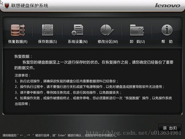4.如果操作失败,或操作被提前终止,或意外停电,您必须重新进行一次“恢复数据”操作,以免操作系统出现异常。