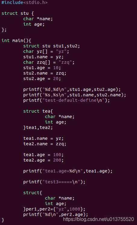 6 }stu2,stu3 = {"yz",12},*pstu = &stu3;