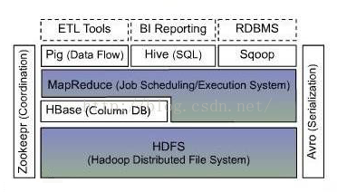 Hadoop是Apache软件基金会旗下的一个开源分布式计算平台,以Hadoop分布式文件系统(HDFS)和MapReduce(Google MapReduce的开源实现)为核心的Hadoop为用户提供了系统底层细节透明的分布式基础架构。HDFS的高容错性、高伸缩性等优点允许用户将Hadoop部署在低廉的硬件上,形成分布式系统;MapReduce分布式编程模型允许用户在不了解分布式系统底层细节的情况下开发并行应用程序。所以用户可以利用Hadoop轻松底组织计算机资源,从而搭建自己的分布式计算平台,并且可以充分利用集群的计算和存储能力,完成海量数据的处理。图1展示了Hadoop生态系统包括的内容。