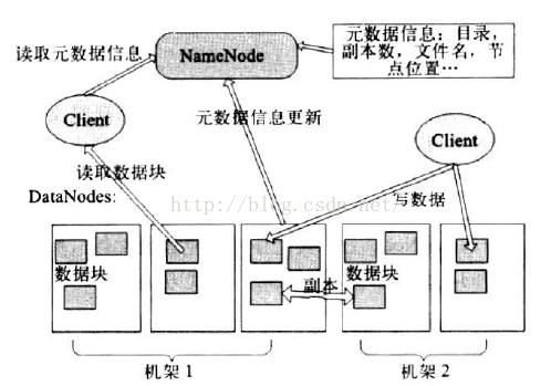 如图2所示,HDFS采用Master/Slave架构对文件系统进行管理,一个HDFS集群是由一个NameNode和一定数目的DataNode组成的。NameNode是一个中心服务器,负责管理文件系统的名字空间以及客户端对文件的访问。集群中的DataNode一般是一个节点运行一个DataNode进程,负责管理它所在节点上的存储。