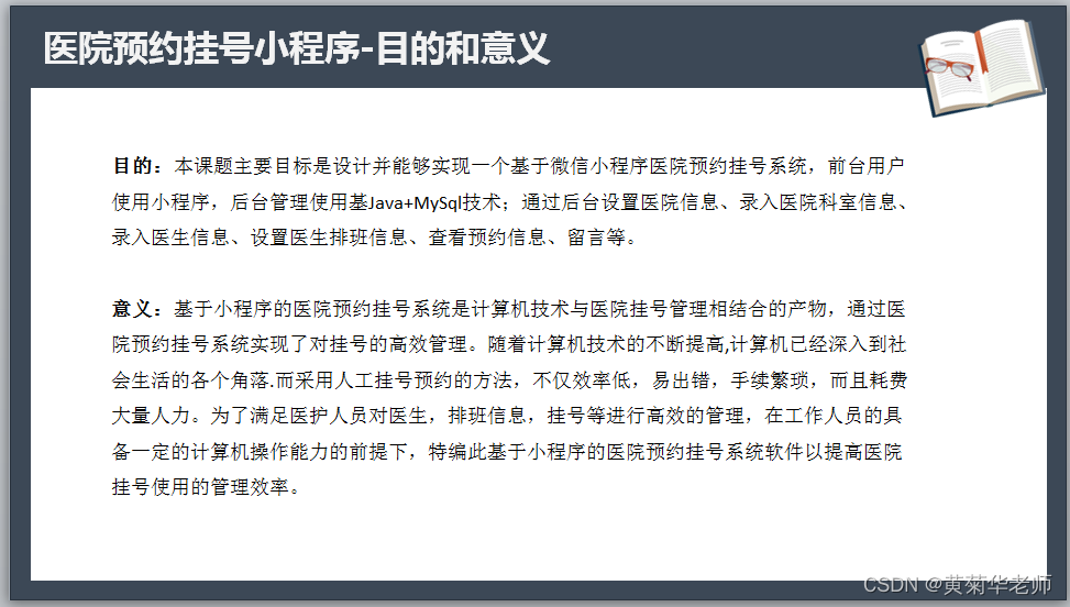 本部分讲解 微信预约挂号小程序毕业设计 开题答辩PPT