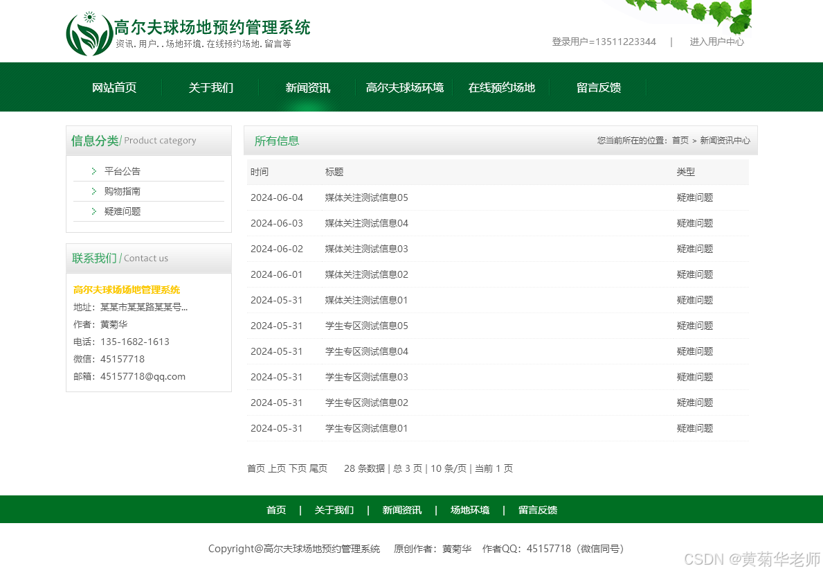 资讯中心:支持资讯分类设置,录入资讯,资讯列表,资讯修改和删除。