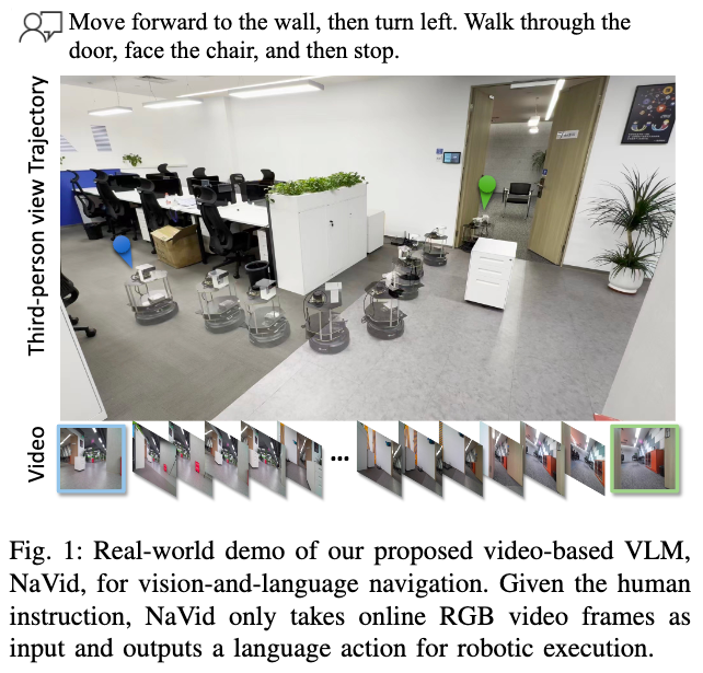 Zhang J, Wang K, Xu R, et al. Navid: Video-based vlm plans the next step for vision-and-language navigation[J]. arXiv preprint arXiv:2402.15852, 2024.