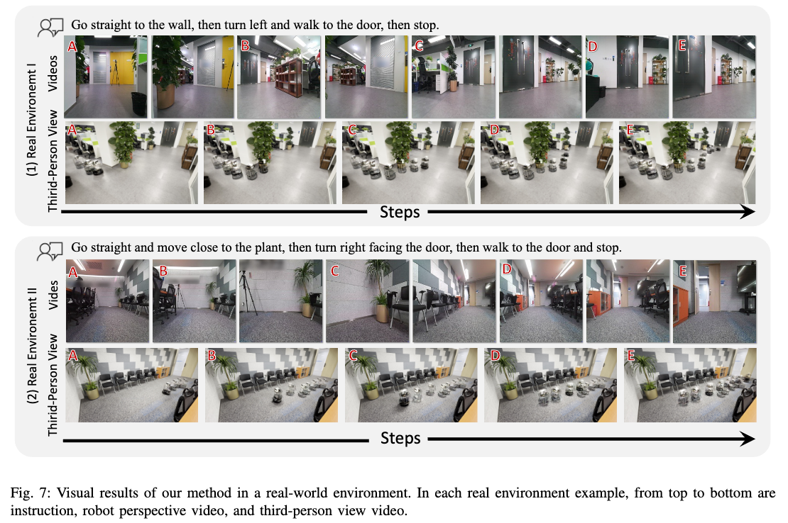 - 在真实世界环境中,NaVid 展现出良好的泛化能力,能够完成复杂的 VLN 任务。