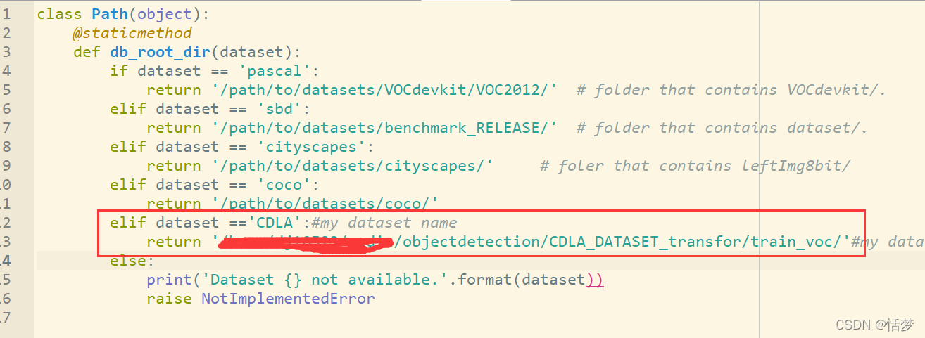 (1)修改工程中的mypath.py,在其中加上自己的数据集名字和所在的路径
